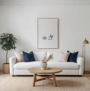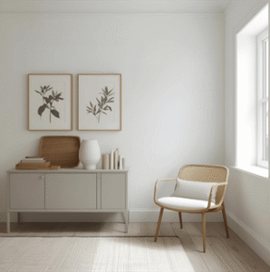 Decor Integration: Pair calming wall colours with natural materials like wood, stone, and plants to enhance the tranquil vibe.