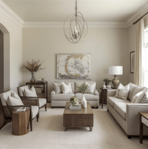Living Rooms: Light neutral shades with hints of warmth create a welcoming atmosphere. Paired with natural light, they open up the space and make it feel airy and cheerful.